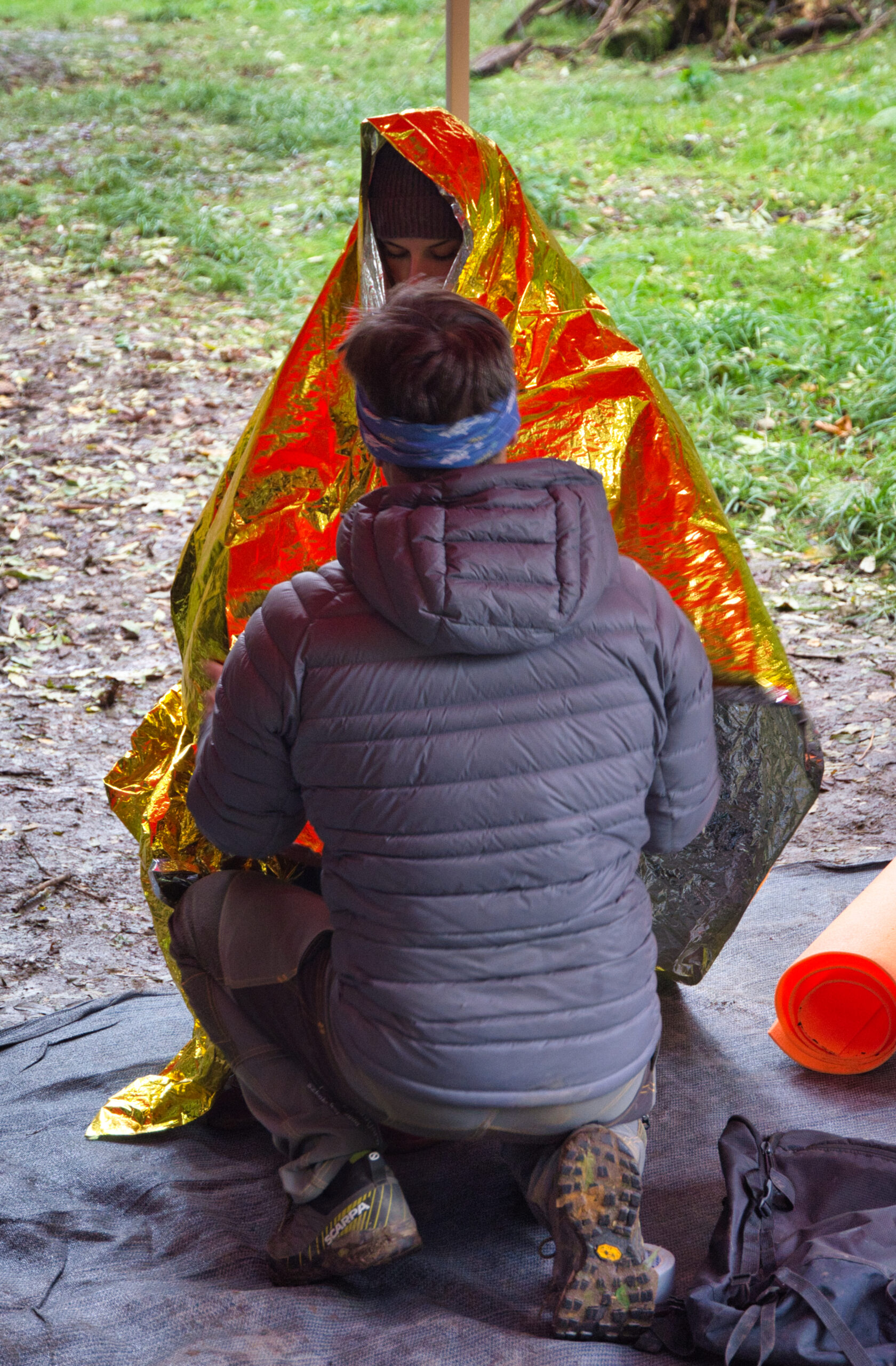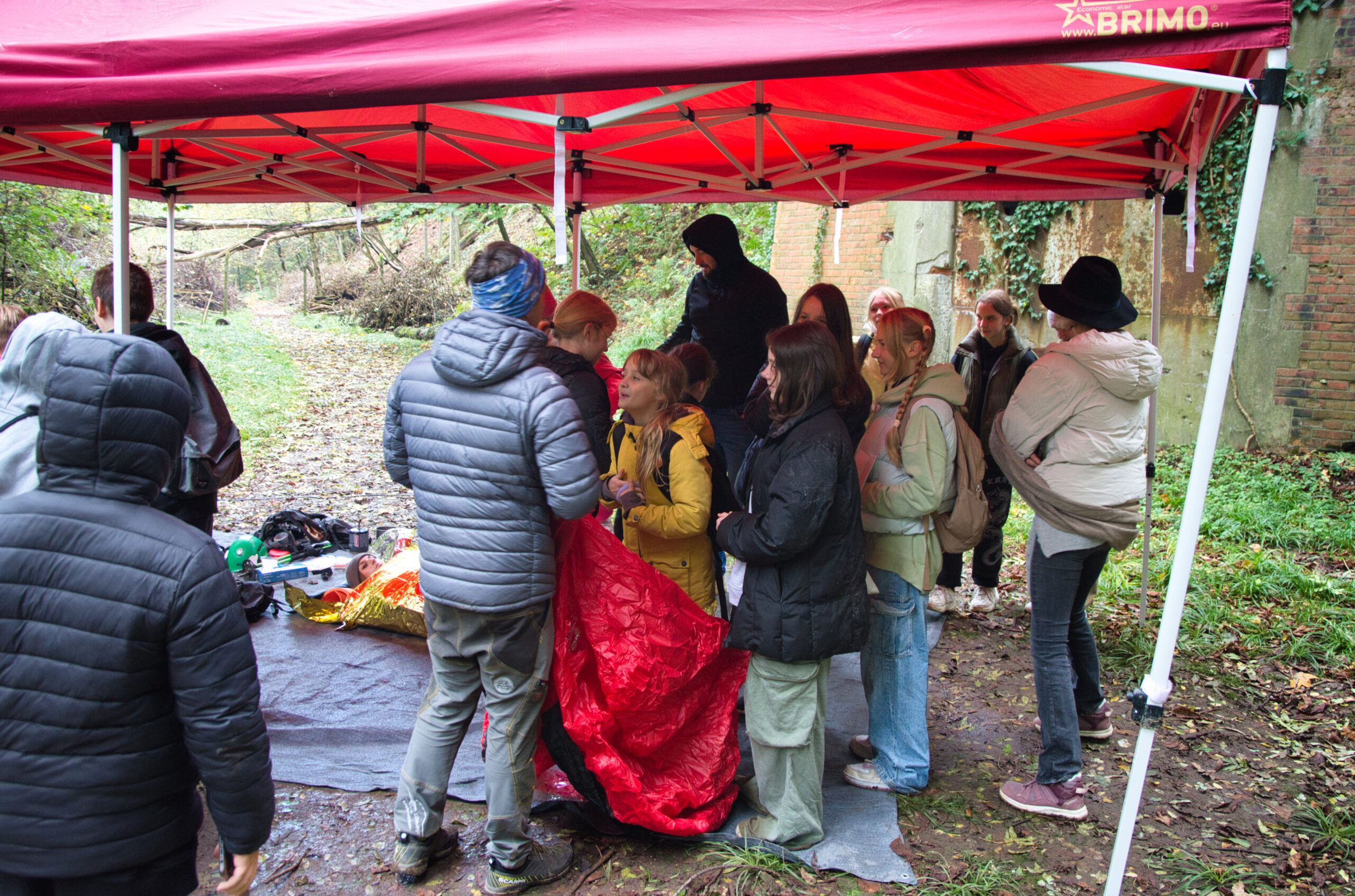 W fosie Fortu Barycz zaaranżowaliśmy symulację wypadku, by realistycznie zaprezentować procedury zabezpieczenia osoby poszkodowanej w warunkach terenowych. Uczestnicy ćwiczyli praktyczne kroki postępowania w sytuacji kryzysowej, w tym ocenę stanu poszkodowanego, udzielanie podstawowej pomocy i zabezpieczanie w stanie wychłodzenia, jak również przygotowanie do wezwania służb ratunkowych.